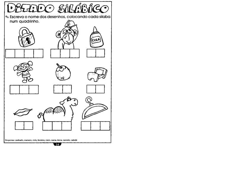 Iniciar a aula fazendo uma breve revisão do que são as famílias silábicas. Entregar uma cópia com ditado de sílabas para cada aluno.