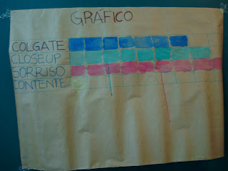 Foi confeccionado um gráfico coletivo (cartaz )e cada aluno fez o seu no caderno.