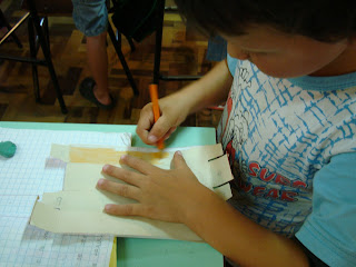 As crianças irão dar forma às planificações e começarão a desenvolver a visão espacial. Chamar a atenção para as planificações isoladas, juntas formaram um paralelepípedo.